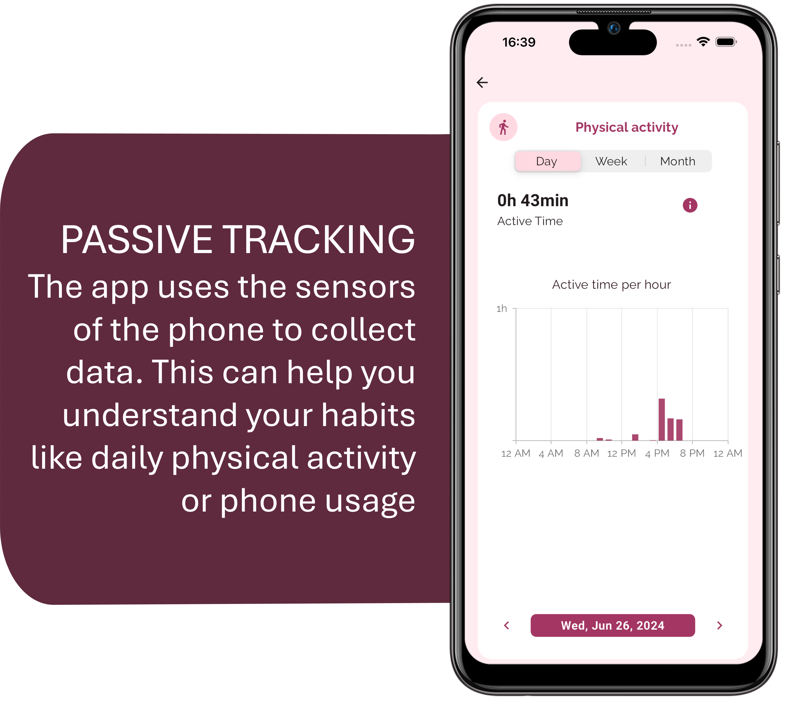 This app is designed to be used in a clinical trial in different centers across Europe and it leverages smartphone sensors to gather valuable insights into mobility, physical activity, sociability and sleep patterns of the end user.