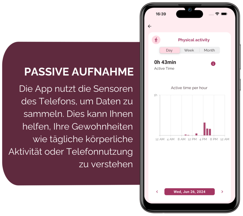 Diese App soll im Rahmen einer klinischen Studie in verschiedenen Zentren in Europa eingesetzt werden und nutzt Smartphone-Sensoren, um wertvolle Erkenntnisse über Mobilität, körperliche Aktivität, Geselligkeit und Schlafverhalten des Nutzers zu gewinnen.